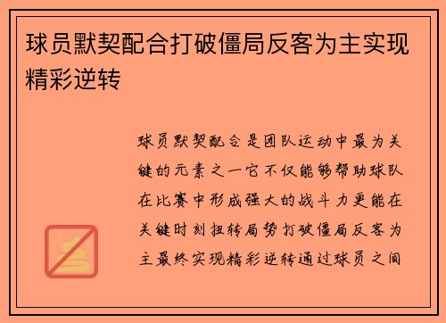 球员默契配合是团队运动中最为关键的元素之一,它不仅能够帮助球队在比赛中形成强大的战斗力,更能在关键时刻扭转局势,打破僵局,反客为主,最终实现精彩逆转。通过球员之间的默契配合,不同的战术得以完美执行,团...